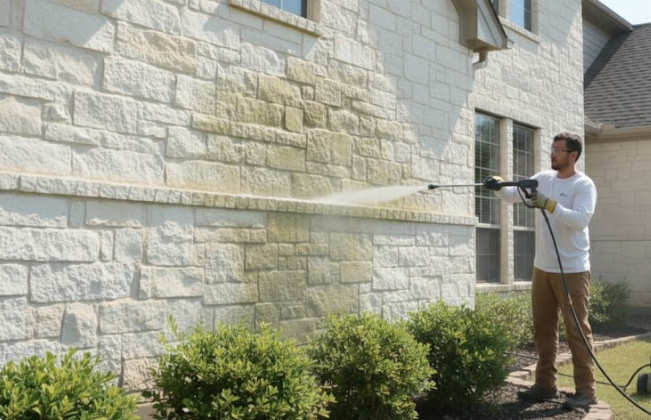 Masonry & Stone/Siding Soft Washing: We meticulously clean decorative stone borders and paver edges to remove moss and discoloration that accumulates in Green/Brown Blotches.